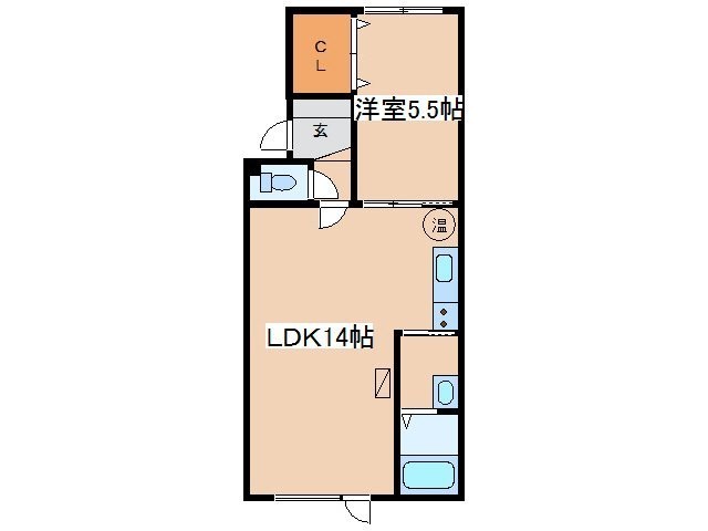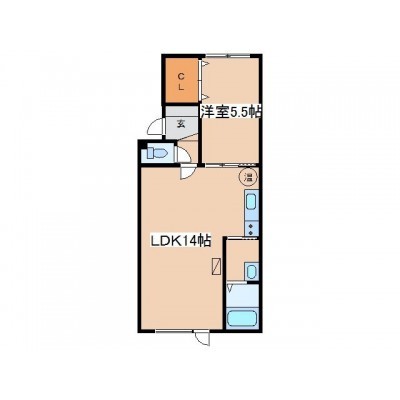 1LDK(44.2m²)└ LDK14帖 洋室5.5帖