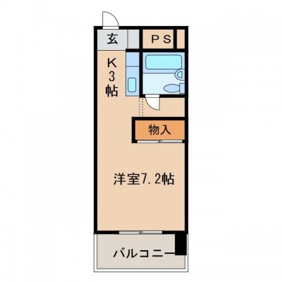 1K(26.42m²)└ 洋室7.2帖 K3帖