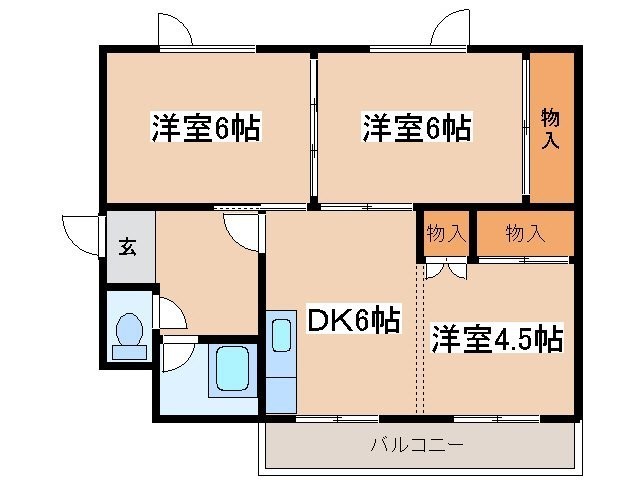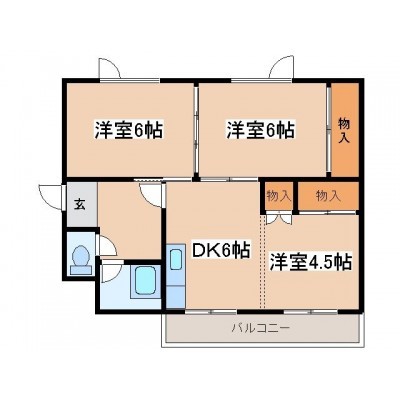 3DK(51.2m²)└ DK6帖 洋室6帖 洋室6帖 洋室4.5帖
