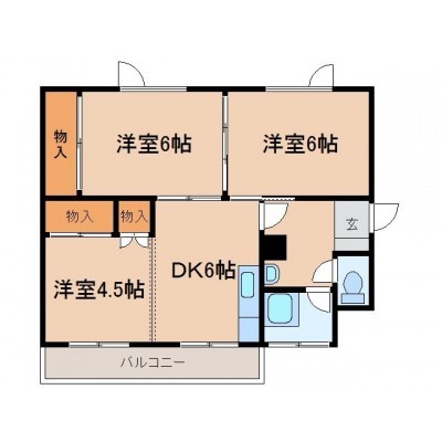 3DK(51.2m²)└ DK6帖 洋室6帖 洋室6帖 洋室4.5帖