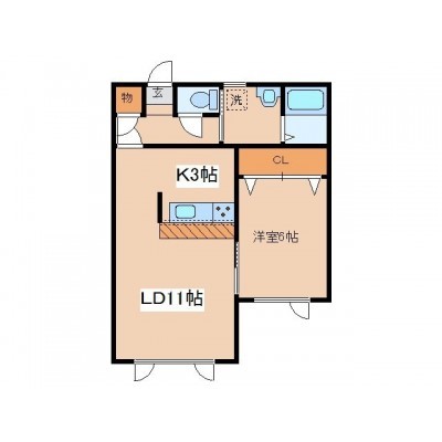 1LDK(47.2m²)└ LD11帖 K3帖 洋室6帖