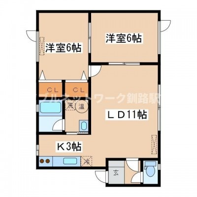 2LDK(54.5m²)└ LD11帖 洋室6帖 洋室6帖 K3帖