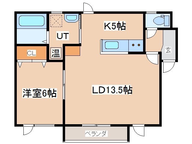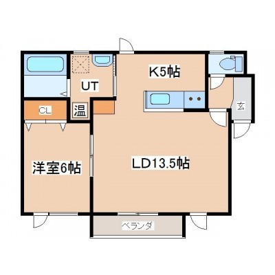 1LDK(54.67m²)└ LD13.5帖 K5帖 洋室6帖
