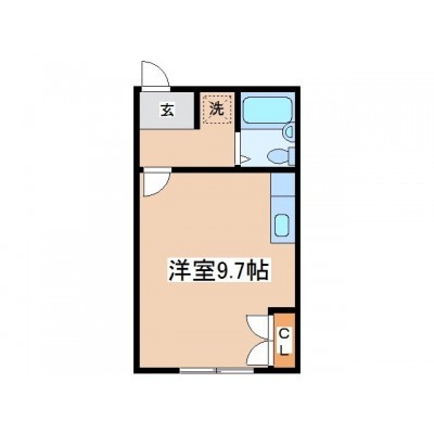 ワンルーム(23m²)└ 洋室9.7帖