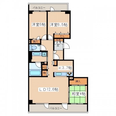 3LDK(80.04m²)└ LD12.6帖 K3.7帖 和室4帖 洋室6.5帖 洋室6帖