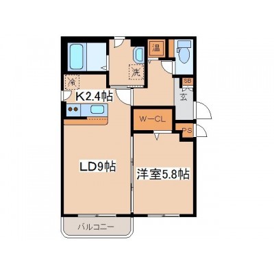 1LDK(48.29m²)└ LD9帖 K2.4帖 洋室5.8帖