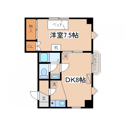 1DK(29.8m²)└ DK8帖 洋室7.5帖