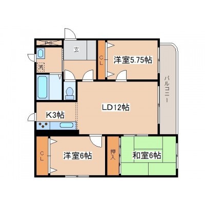 3LDK(76.26m²)└ LD12帖 K3帖 洋室6帖 洋室5.7帖 和室6帖