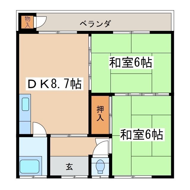 2DK(49.93m²)└ DK8.7帖 和室6帖 和室6帖