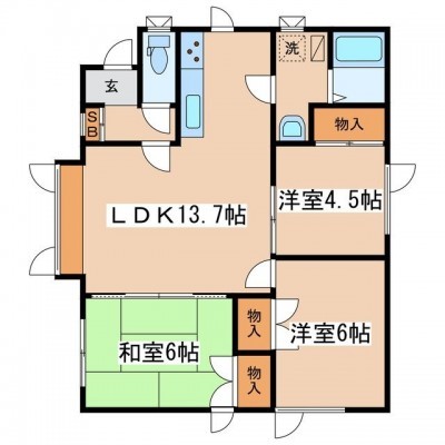 3LDK(63.58m²)└ LDK13.7帖 和室6帖 洋室6帖 洋室4.5帖