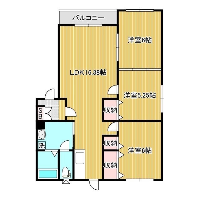 3LDK(68.65m²)└ LDK16.3帖 洋室6.0帖×2 洋室5.2帖