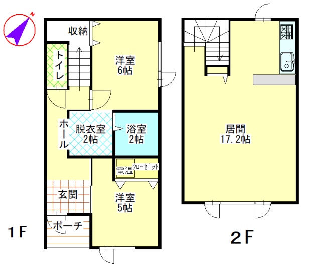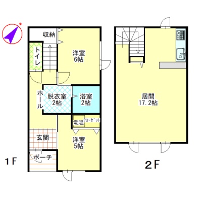 2LDK(74.52m²)└ 1階:洋室6帖 / 2階:LDK17.2帖 / その他:洋室5帖