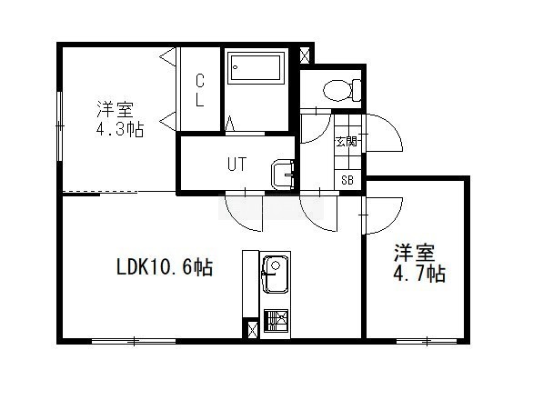 2LDK(42.7m²)└ LDK10.6帖 洋室4.7帖 洋室4.3帖