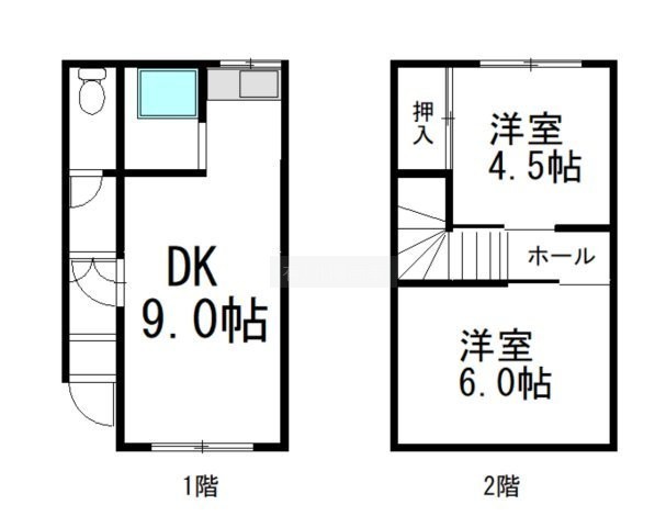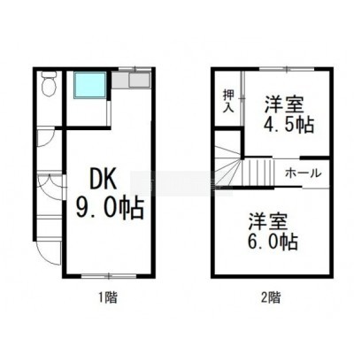 2DK(45.36m²)└ DK9帖 洋室6帖 和室4.5帖