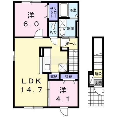 2LDK(58.45m²)└ 洋室4.1帖 洋室6帖 LDK14.7帖