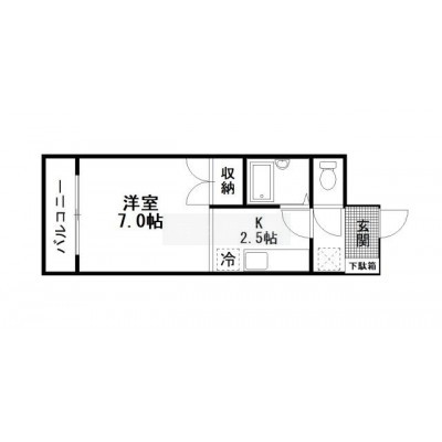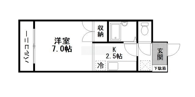 1K(25.6m²)└ 洋室7帖 K2.5帖
