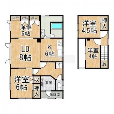 4LDK(92.74m²)└ LD8帖 K6帖 洋室6帖