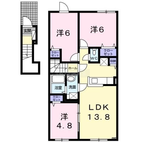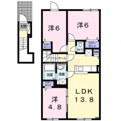 3LDK(67.2m²)└ 洋室6帖 洋室6帖 洋室4.8帖 LDK13.8帖