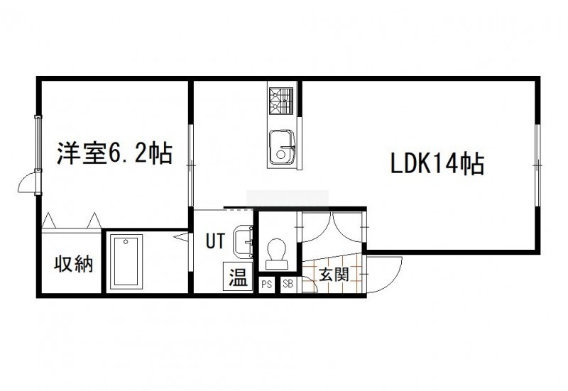 1LDK(45.6m²)└ LDK14帖 洋室6.2帖