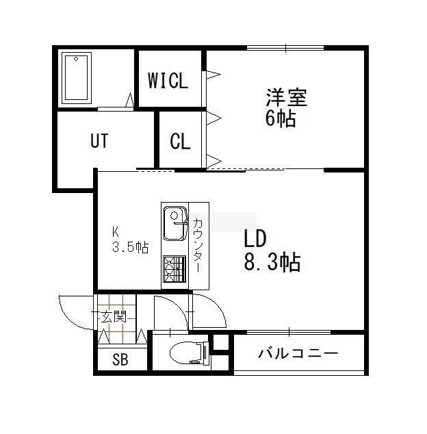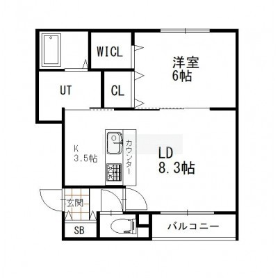 1LDK(43.15m²)└ LD8.3帖 K3.5帖 洋室6帖