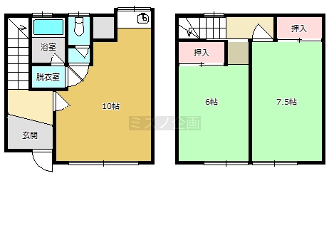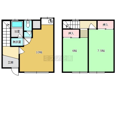 2DK(58.2m²)└ DK10帖 洋室7.5帖 洋室6帖