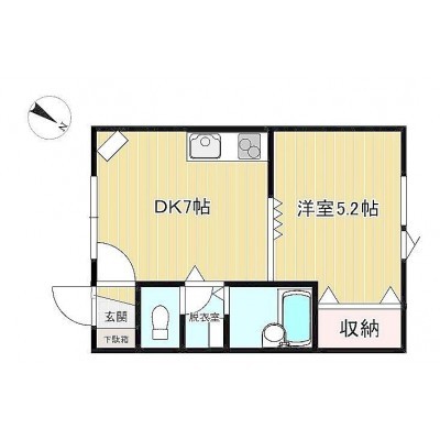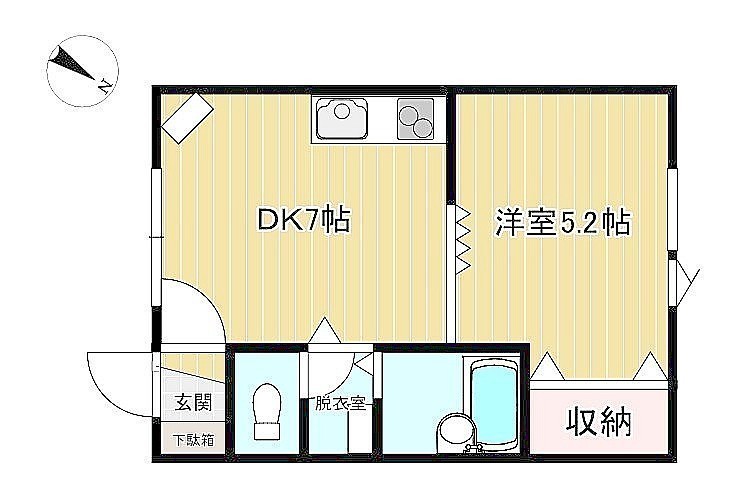 1DK(29m²)└ DK7帖 洋室5.2帖