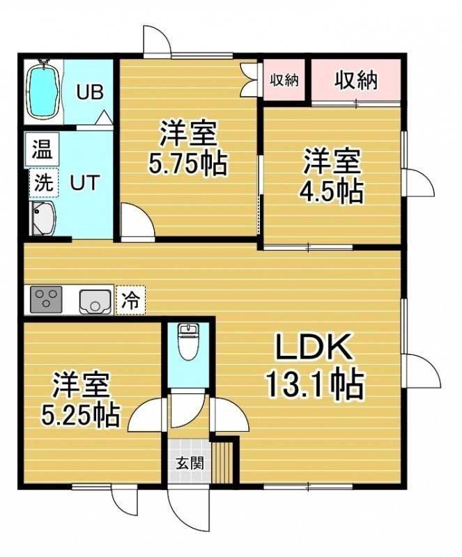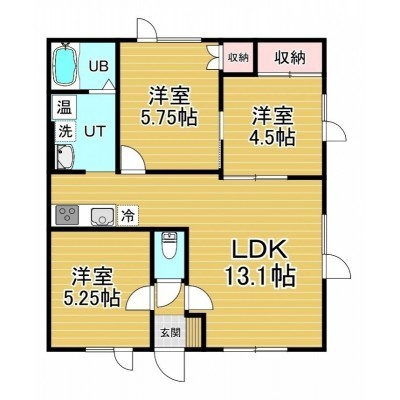 3LDK(58.32m²)└ 2階:LDK13.1帖 洋室4.5帖 洋室5.25帖 洋室5.75帖