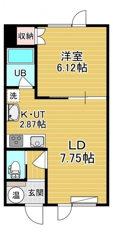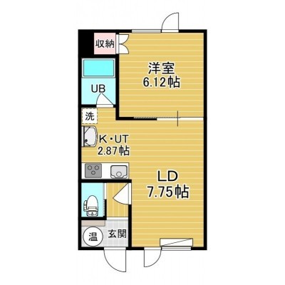 1LDK(35.1m²)└ 2階:LD7.75帖 K2.87帖 洋室6.12帖