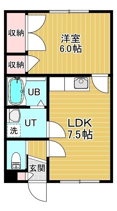 1LDK(32.4m²)└ 2階:LDK7.5帖 洋室6帖