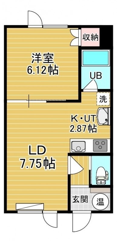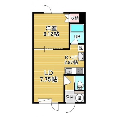 1LDK(35.1m²)└ 2階:LD7.75帖 K2.87帖 洋室6.12帖