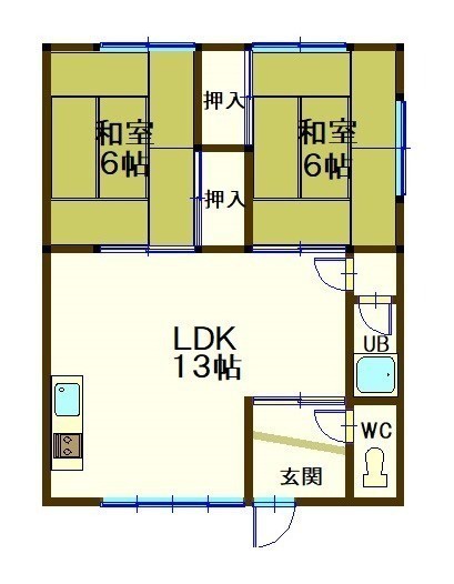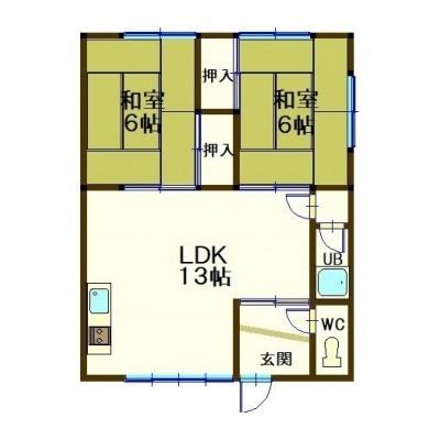 2LDK(52m²)└ LDK13帖 和室6帖 和室6帖 / LD13×和6×和6