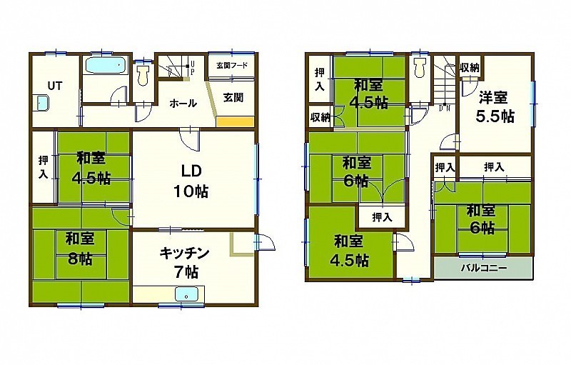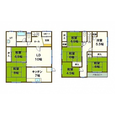 7DK以上└ 1階:LD10帖 和室8帖 和室4.5帖 K7帖 / 2階:洋室5.5帖 和室6帖 和室6帖 和室4.5帖 和室4.5帖