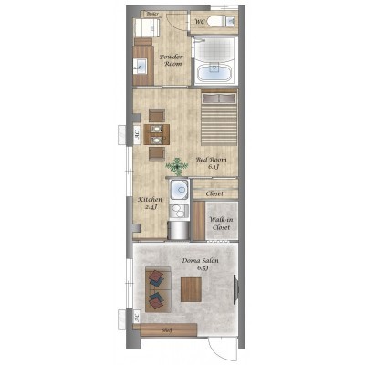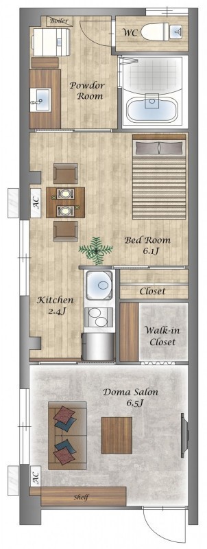 1LDK(38.84m²)└ 1階:LD6.5帖 洋室6.1帖 K2.4帖