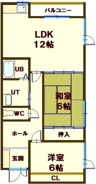 2LDK(59.5m²)└ 2階:LDK12帖 和室6帖 洋室6帖
