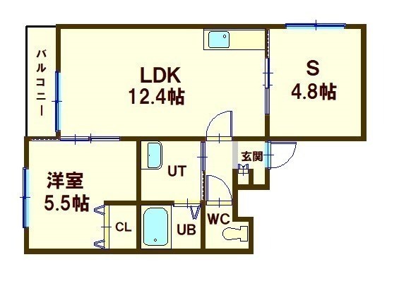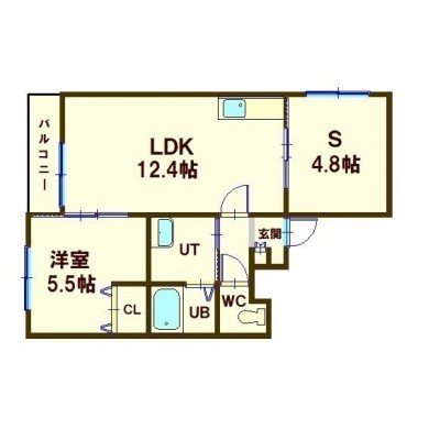 1SLDK(50.45m²)└ 4階:LDK12.4帖 S4.8帖 洋室5.5帖