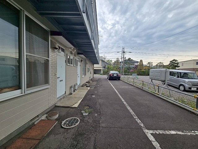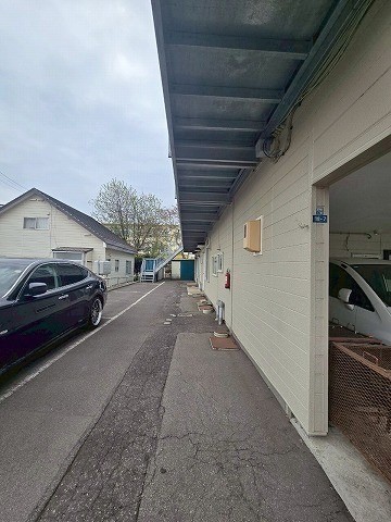 通路奥の階段前です。前に一台駐車されていますので現地要確認です。 |