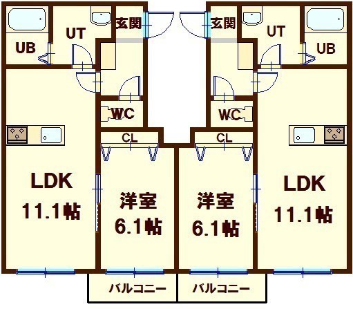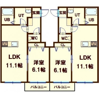 1LDK(47.91m²)└ LDK11.1帖 洋室6.1帖