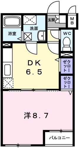 1DK(34.88m²)└ 1階:DK6.5帖 洋室8.7帖