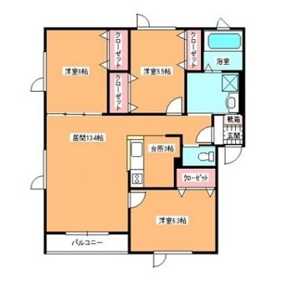 3LDK(73.92m²)└ LDK16.4帖 洋室6.3帖 洋室6帖 洋室5.5帖