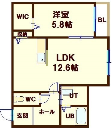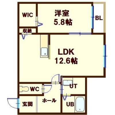 1LDK(45.36m²)└ LDK12.6帖 洋室5.8帖
