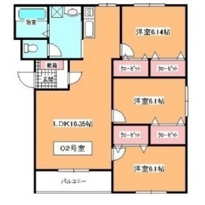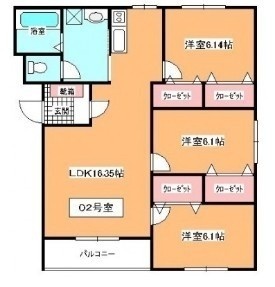 3LDK(75.13m²)└ LDK16.3帖 洋室6.1帖 洋室6.1帖 洋室6.1帖
