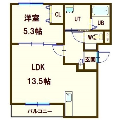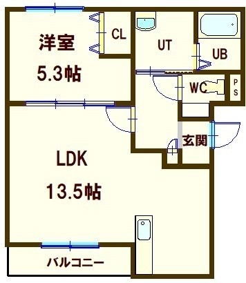1LDK(44.06m²)└ LDK13.5帖 洋室5.3帖