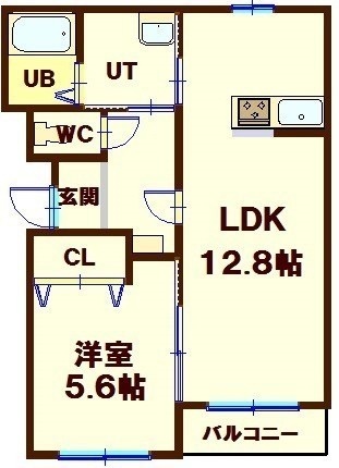 1LDK(44.75m²)└ LDK12.9帖 洋室5.6帖