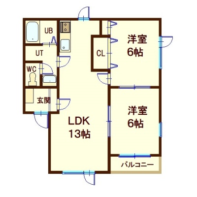 2LDK(52.58m²)└ LDK13帖 洋室6帖 洋室6帖