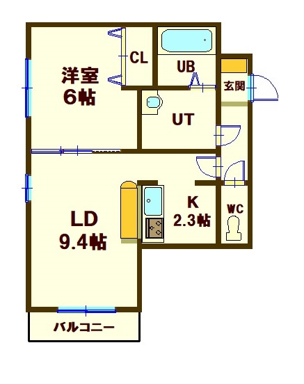 1LDK(41.23m²)└ L9.4帖 K2.3帖 洋室6帖