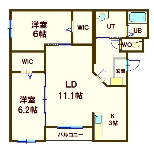 2LDK(62.38m²)└ LDK14.1帖 洋室6.2帖 洋室6帖