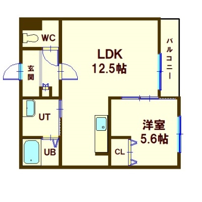 1LDK(42.62m²)└ LDK12.5帖 洋室5.6帖