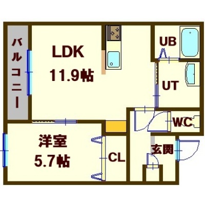 1LDK(43.71m²)└ 2階:LDK11.9帖 洋室5.7帖