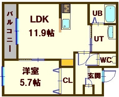 1LDK(43.71m²)└ 2階:LDK11.9帖 洋室5.7帖