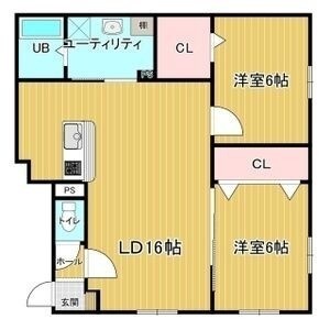 2LDK(61.29m²)└ LDK16帖 洋室6帖 洋室6帖